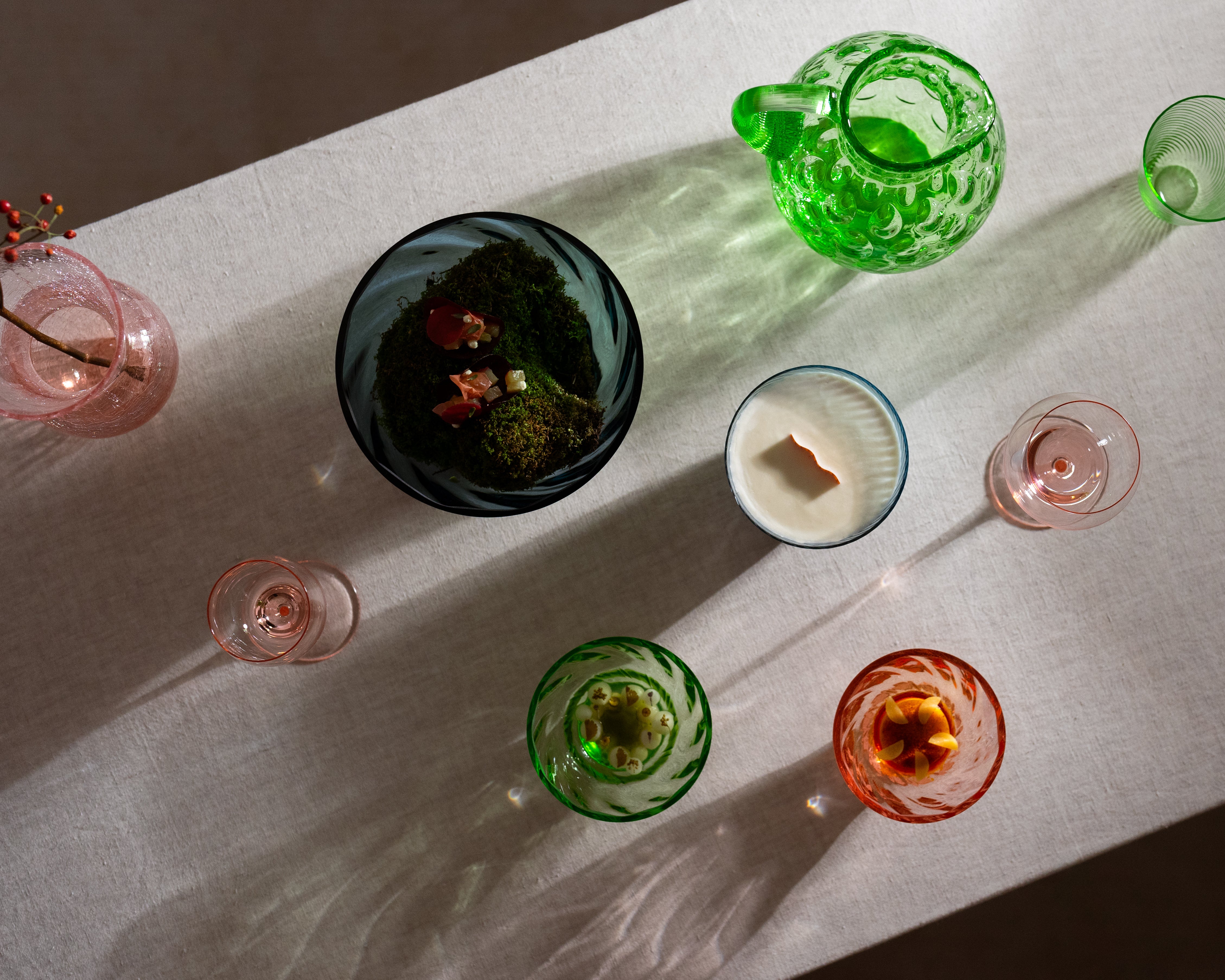 From historic French faience to hand-blown glass made in family workshops — every item is selected for how it feels, not only how it looks.